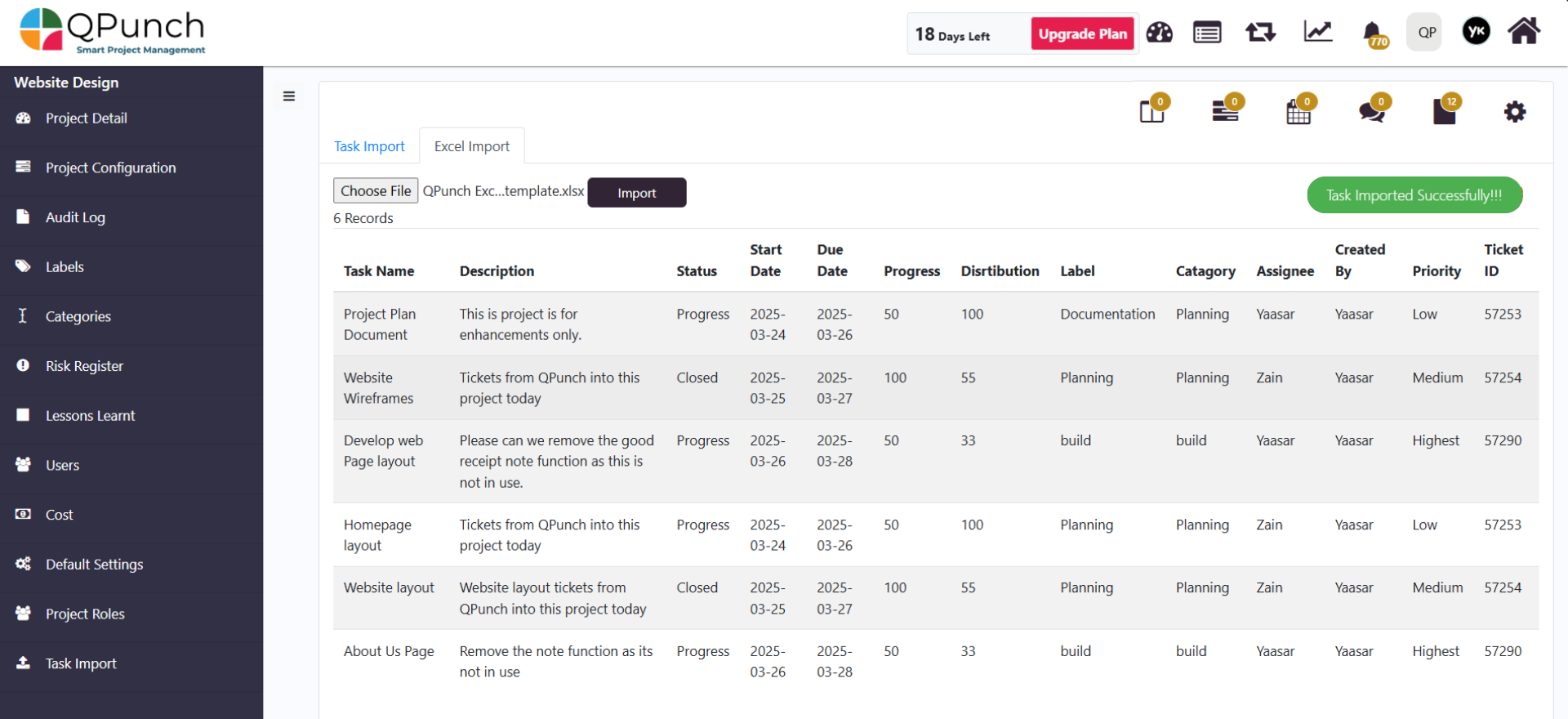 Using the Excel Task Import feature, you can quickly add multiple tasks to your project with just a few clicks. Just follow the format, map your data correctly, and ensure all values match your project setup and import to sit back and let QPunch do the rest.