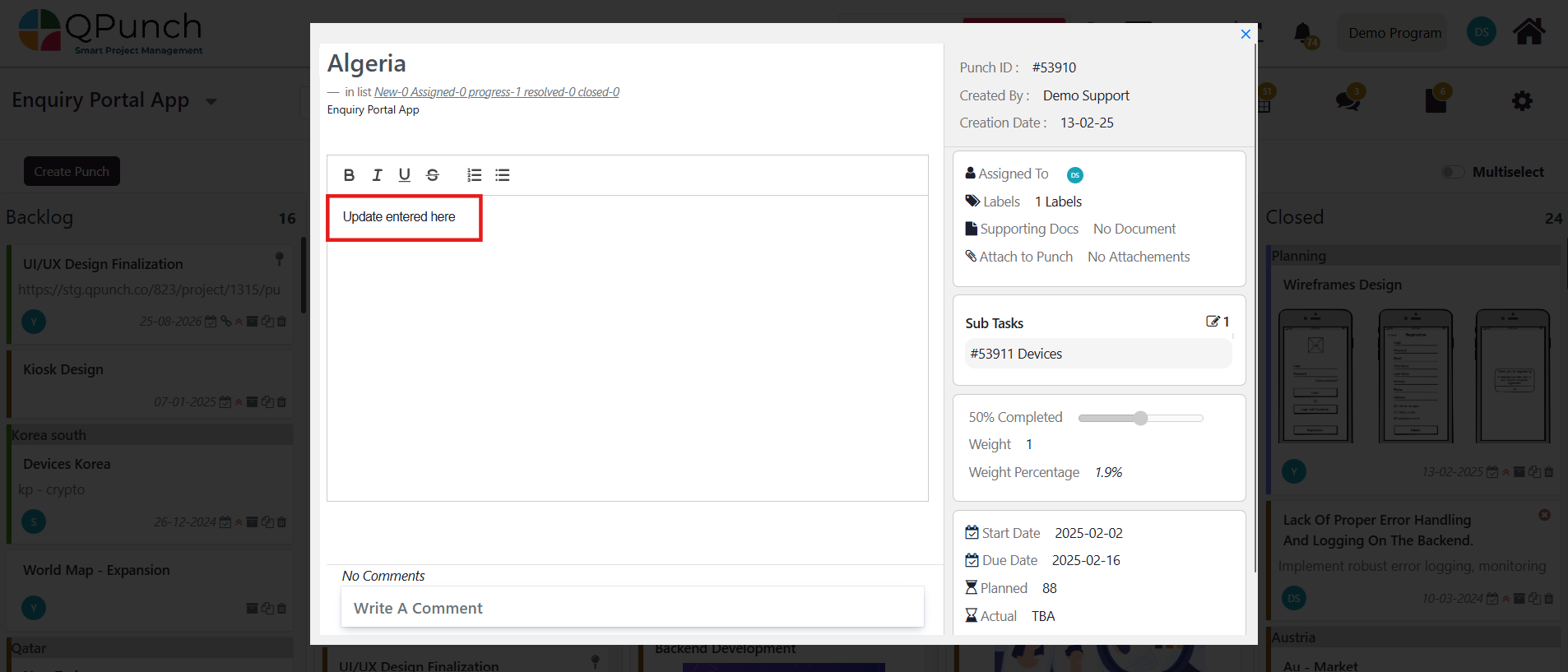 2. In the Kanban Board, edit the description box of a Group Task to reflect new updates.
