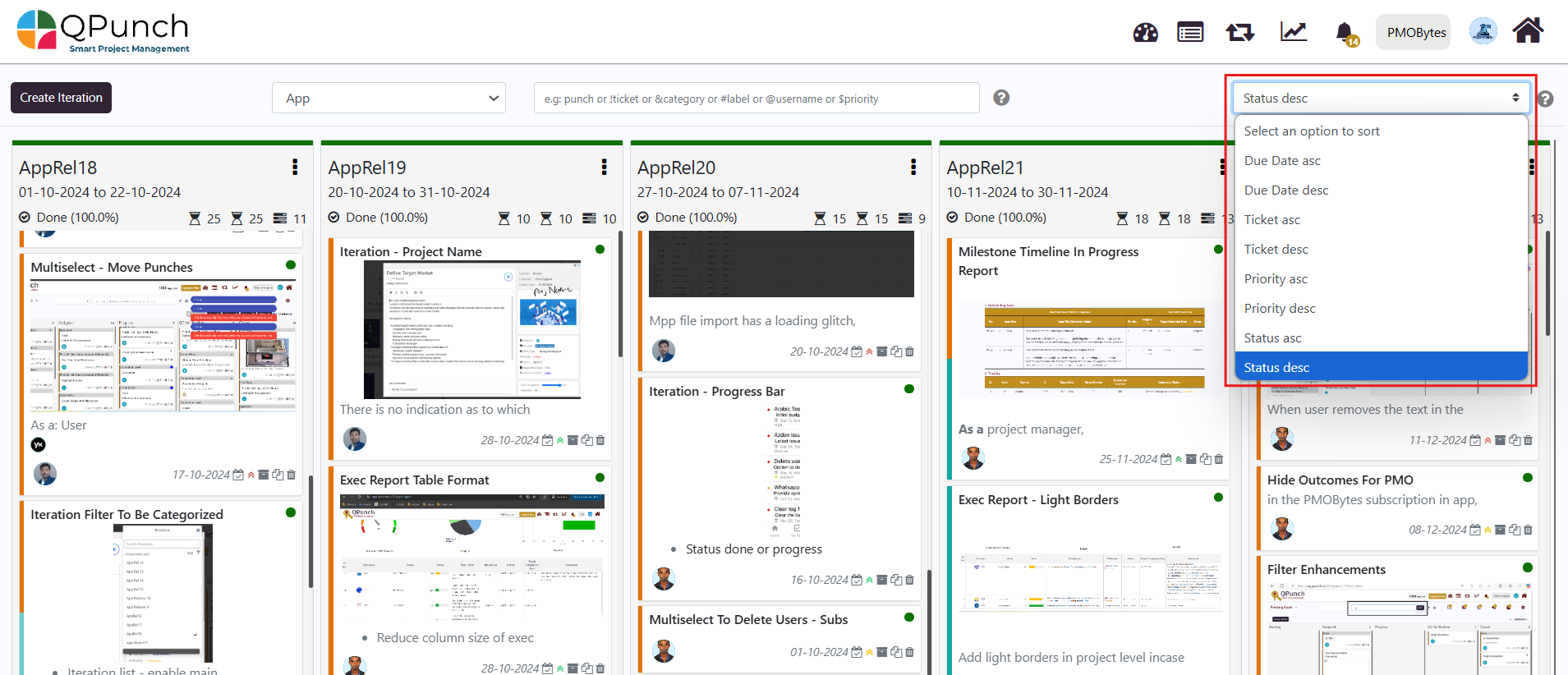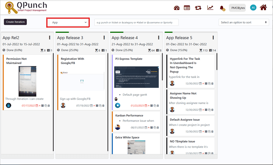Step 2. Inside Iteration page, you can typed-in punch or tickets, or category or label, or username or priority in the search bar. This will help you save time and find what you need faster and easier.